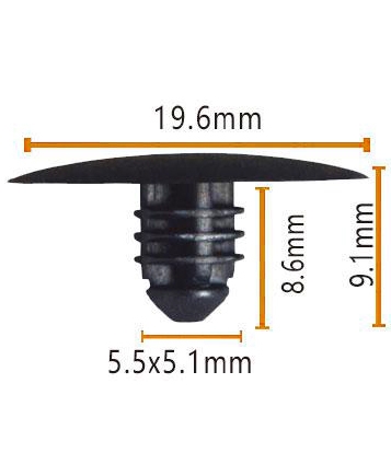 이 나사의 상단은 직경이 19.6mm이고 길이가 8.6mm 인 평평하게 설계되어 차량의 모든 부분과 밀접하게 맞습니다. 중간에서 상승 된 부분은 직경이 5.5mm, 높이가 5.1mm입니다. 이 독특한 디자인은 나사의 조임 효과를 향상시킬뿐만 아니라 설치 프로세스를 더 매끄럽게 만듭니다. 바닥은 직경이 9.1mm 인 평평한 둥근베이스이며 나사를 안정적인지지를 제공합니다. 전체 크기는 명확하게 표시되어있어 사용시 빠르게 식별하고 선택하는 것이 편리합니다.