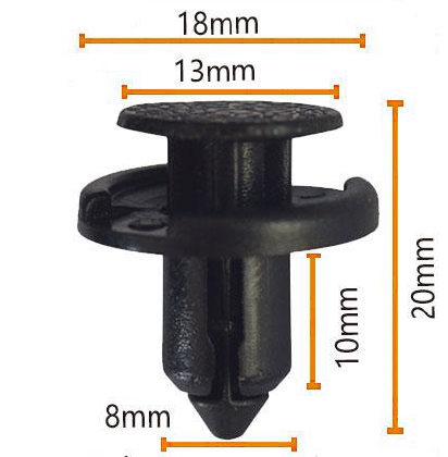 자동차 클립의 테이퍼링 상단 지름은 18mm, 하단 직경은 13mm, 길이는 20mm 및 측면 두께는 8mm입니다.