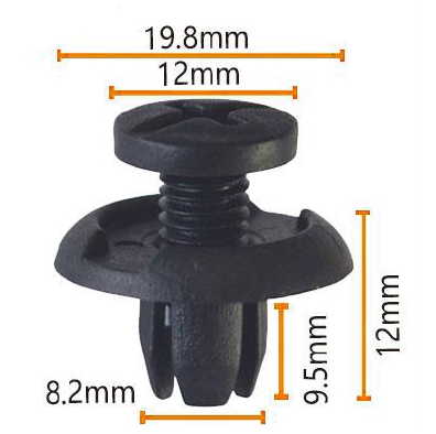 이 패스너는 길이가 19.8mm, 너비가 12mm, 높이가 9.5mm, 두께가 8.2mm를 측정하여 산업 표준에 따라 다양한 자동차 부품에 완벽하게 맞습니다. 고급 블랙 플라스틱으로 제작 된이 건물은 경량 구조, 부식성 및 내마모성을 자랑하여 수명을 향상시킵니다.